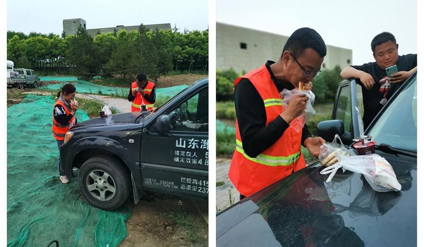 ▲項目組成員在工地簡單的解決午餐